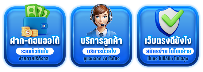 ตอบ : ระบบฝาก-ถอนอัตโนมัติรวดเร็ว มีโปรโมชั่นหลากหลาย รองรับธนาคารชั้นนำทุกแห่ง บริการตลอด 24 ชั่วโมง